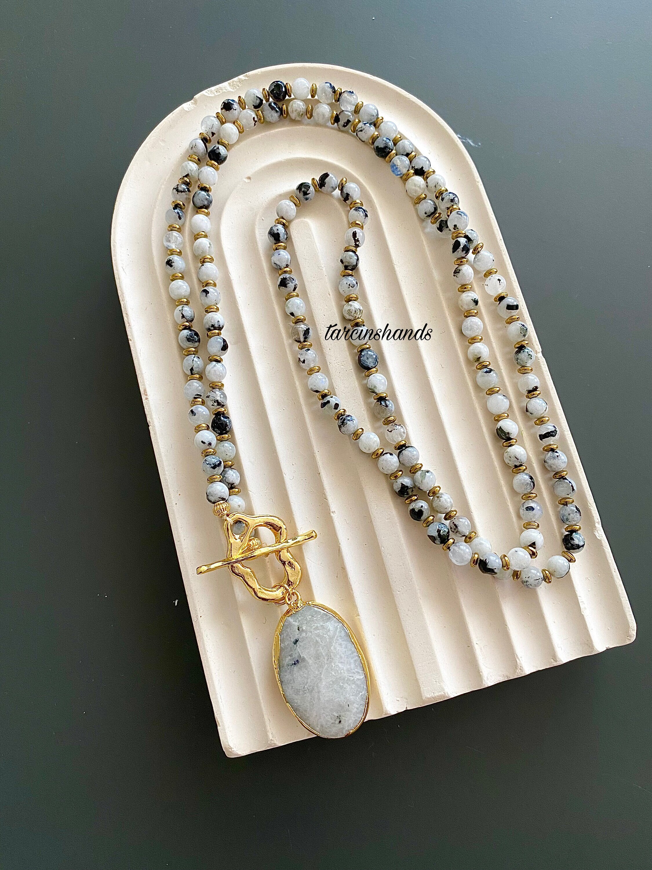 ✨ Moonstone Long and Multistrand Necklace, Multistrand Moonstone Necklace, Toggle Moonstone Necklace, Beaded Moonstone Necklace ✨