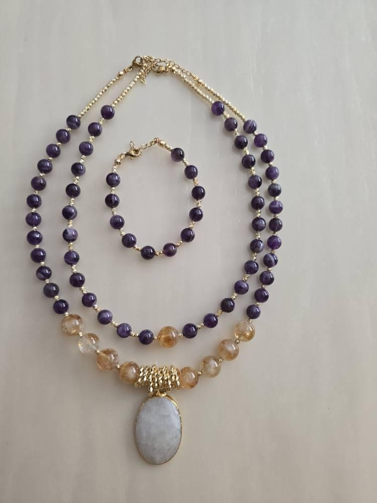 💎 Amethyst & Citrine: The vibrant purple of Amethyst is beautifully balanced by the golden hues of Citrine, making this necklace a striking piece that stands out in any collection.