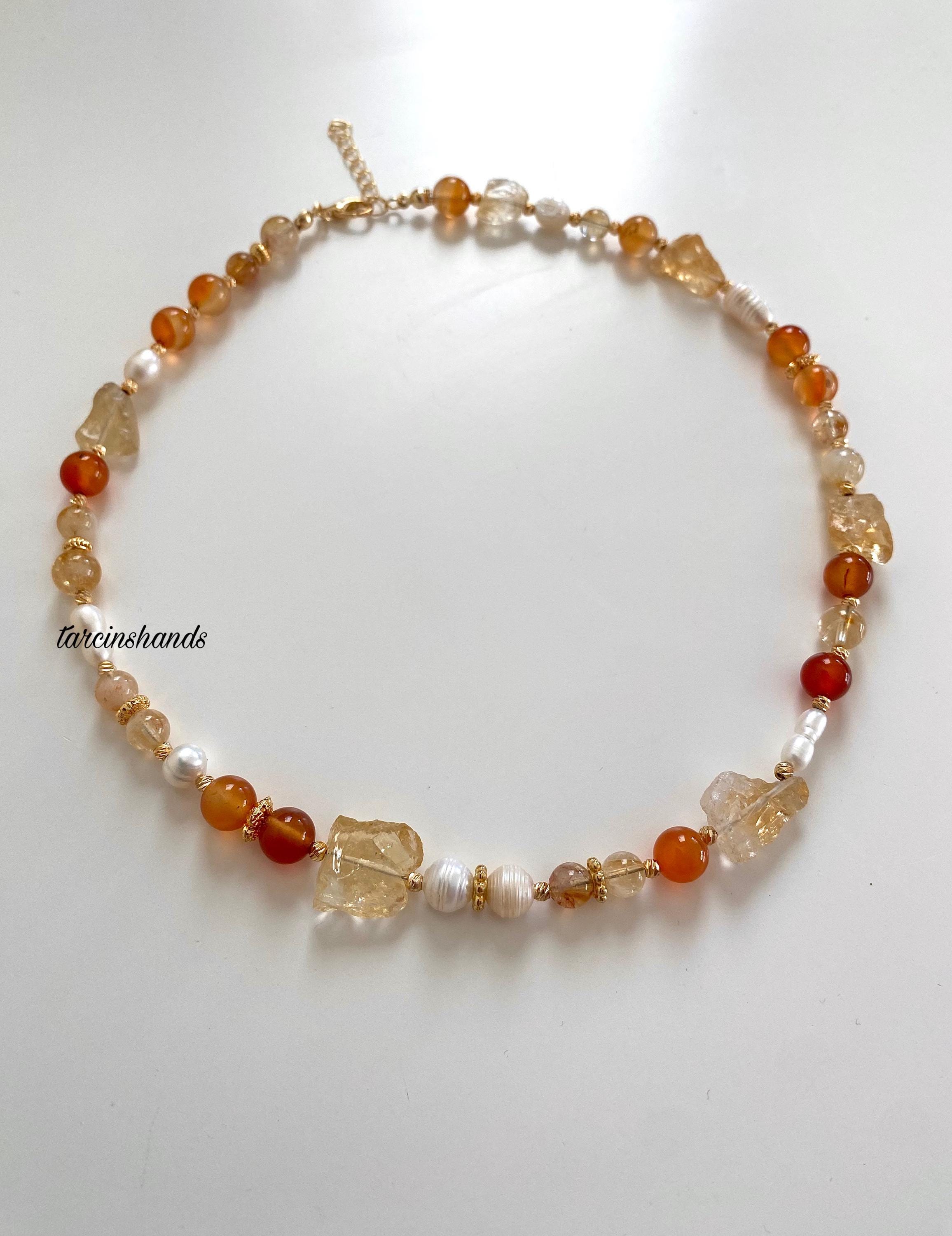 • Vivid orange agate accents: A vibrant pop of color, enhancing the necklace’s bold aesthetic.