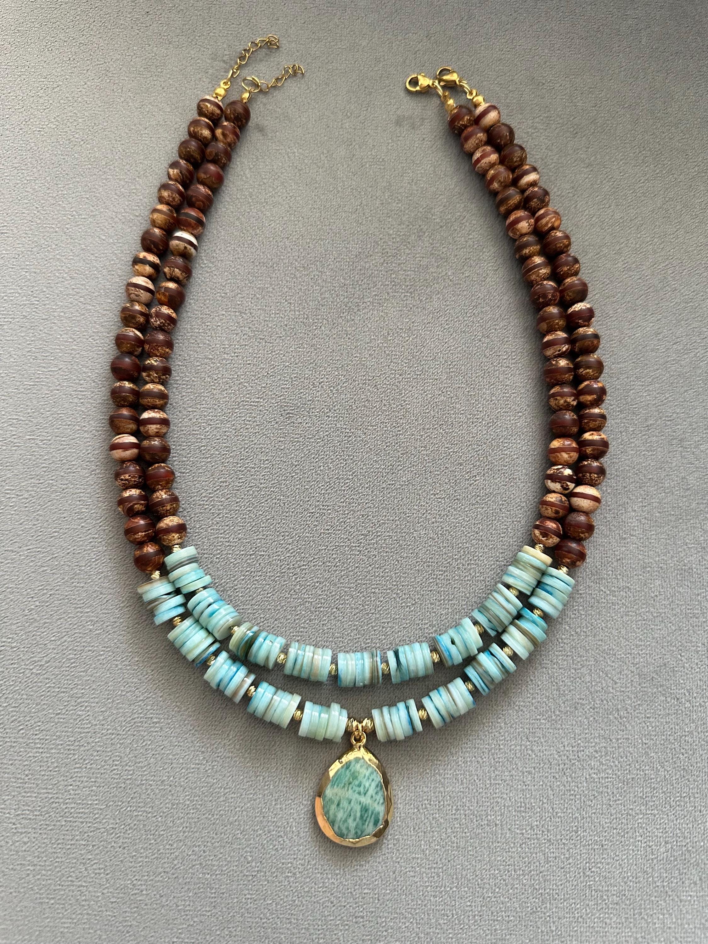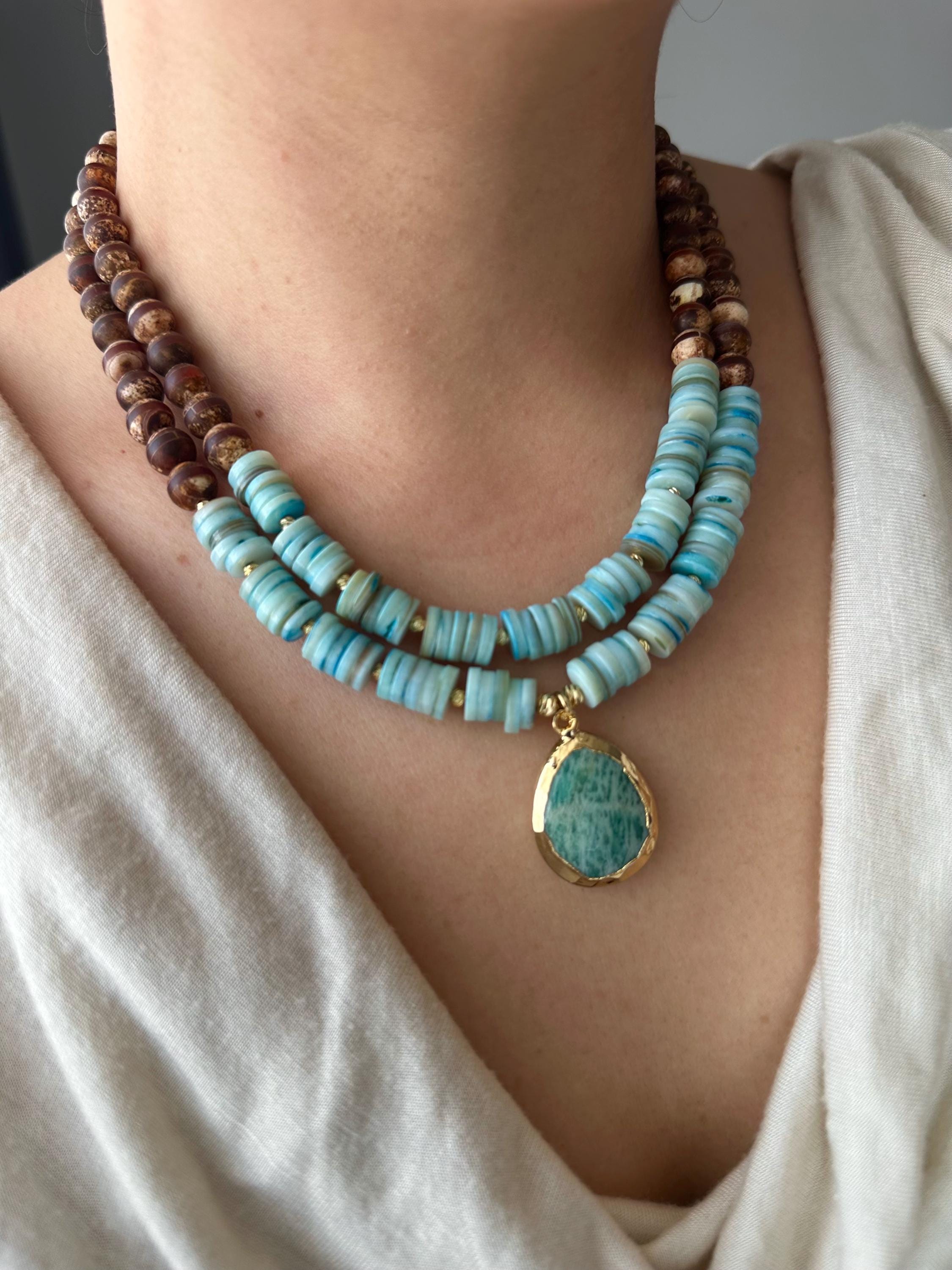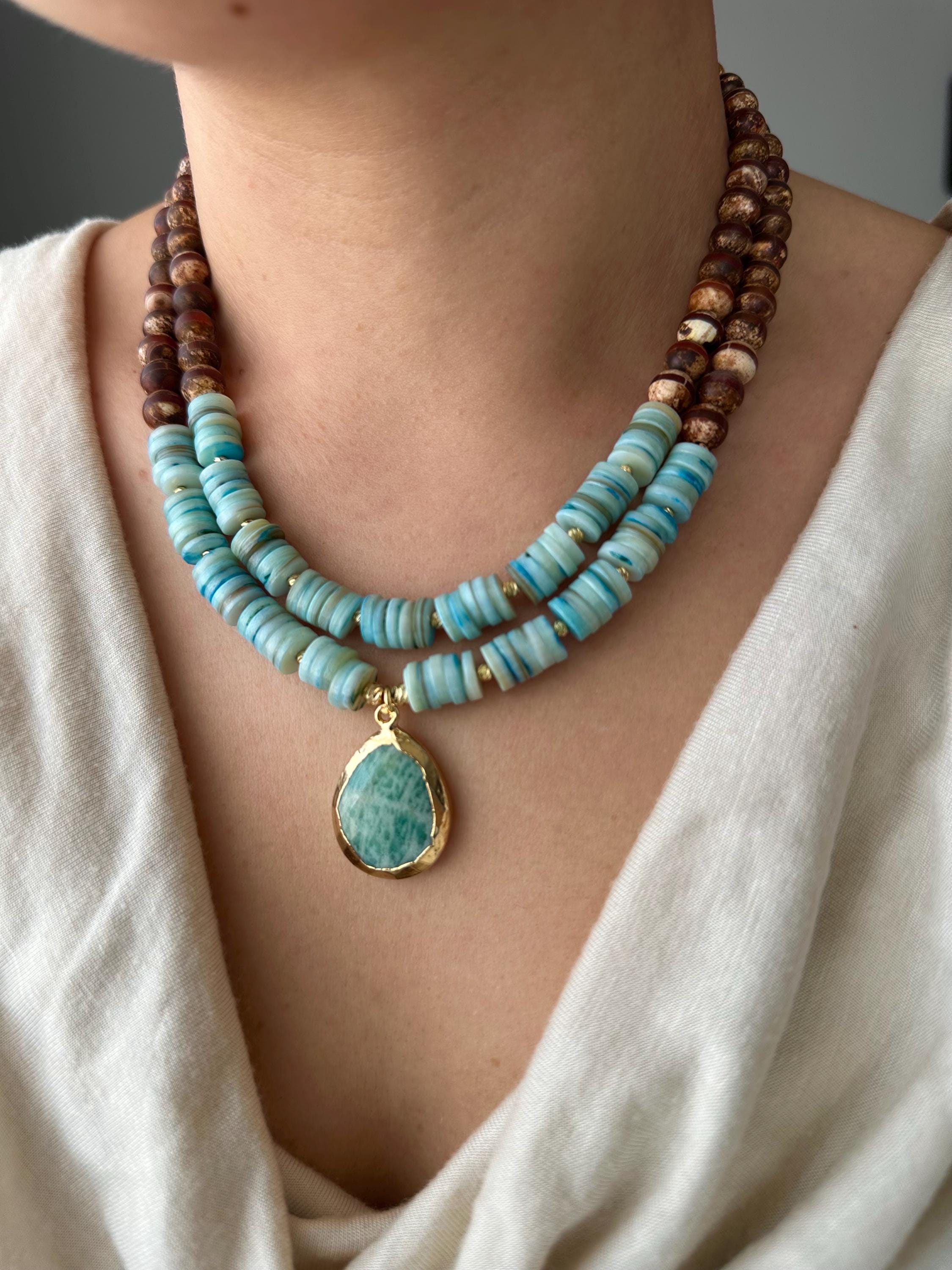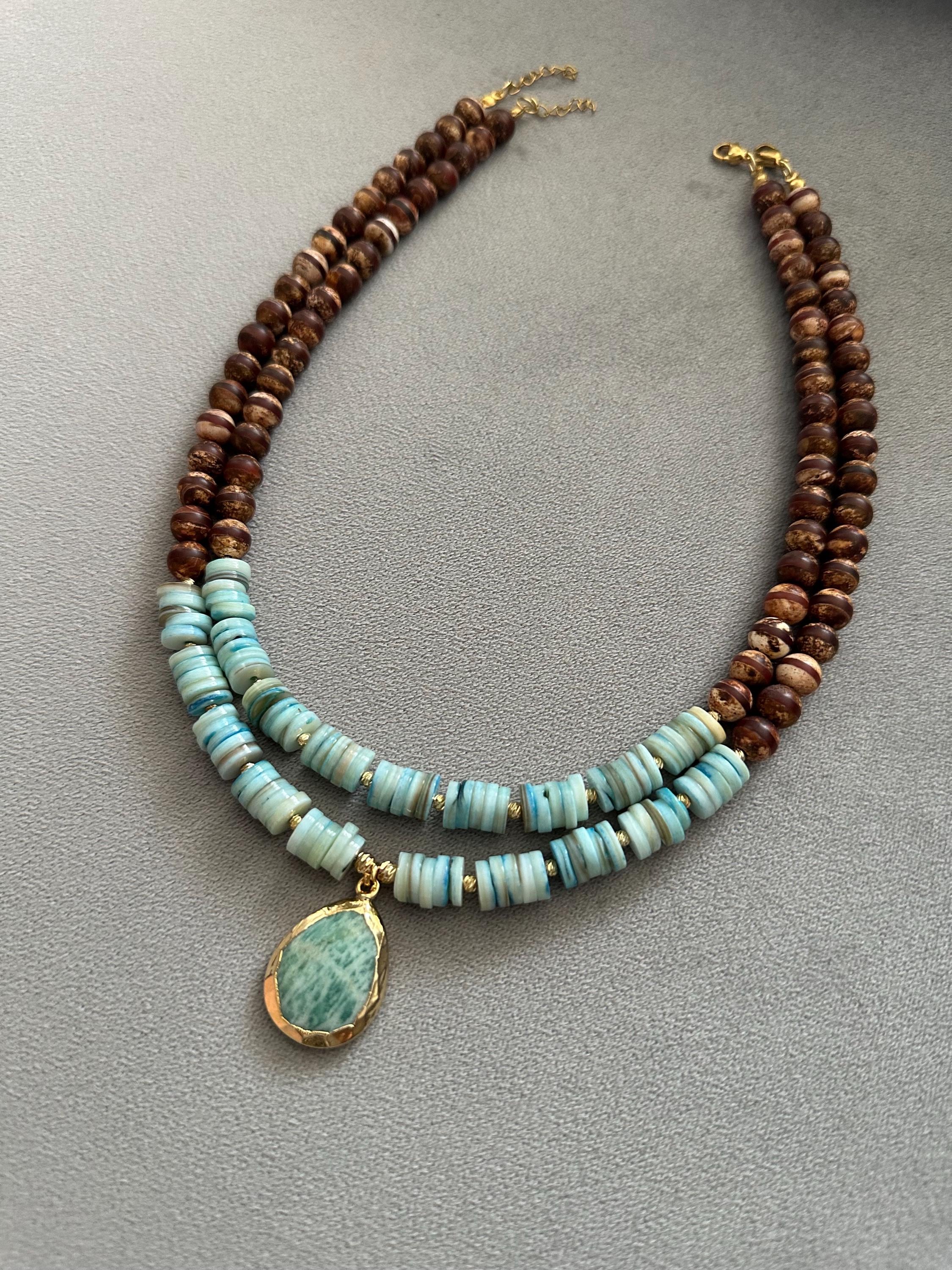 🌊 Layered Necklace with Mother of Pearl & Tibetan Agate