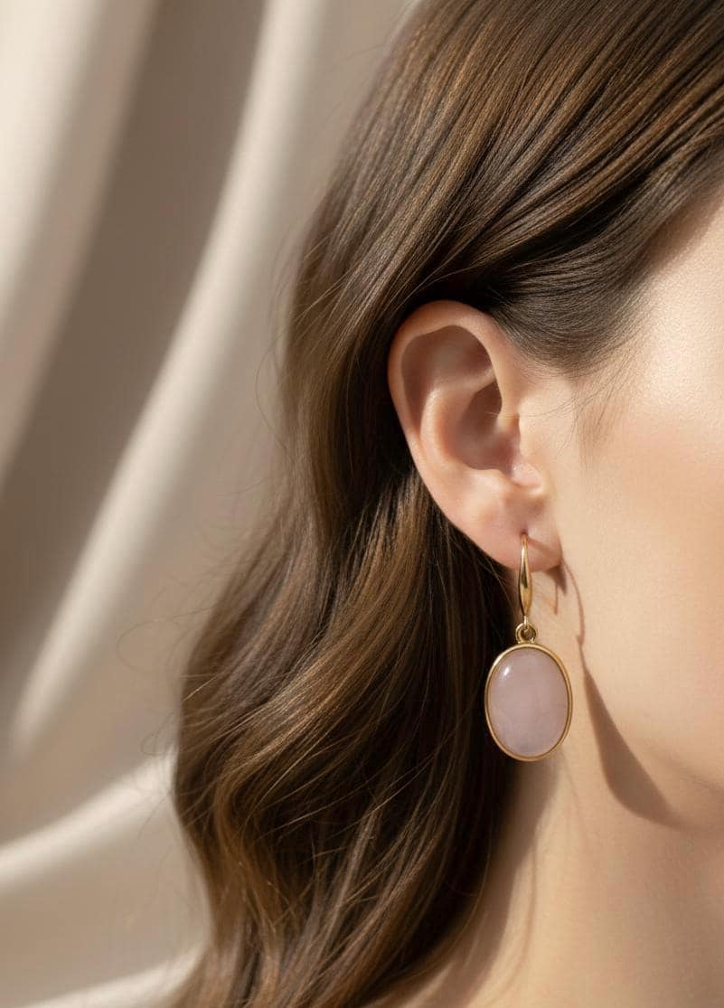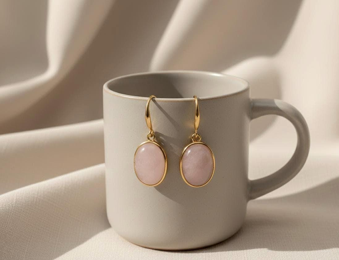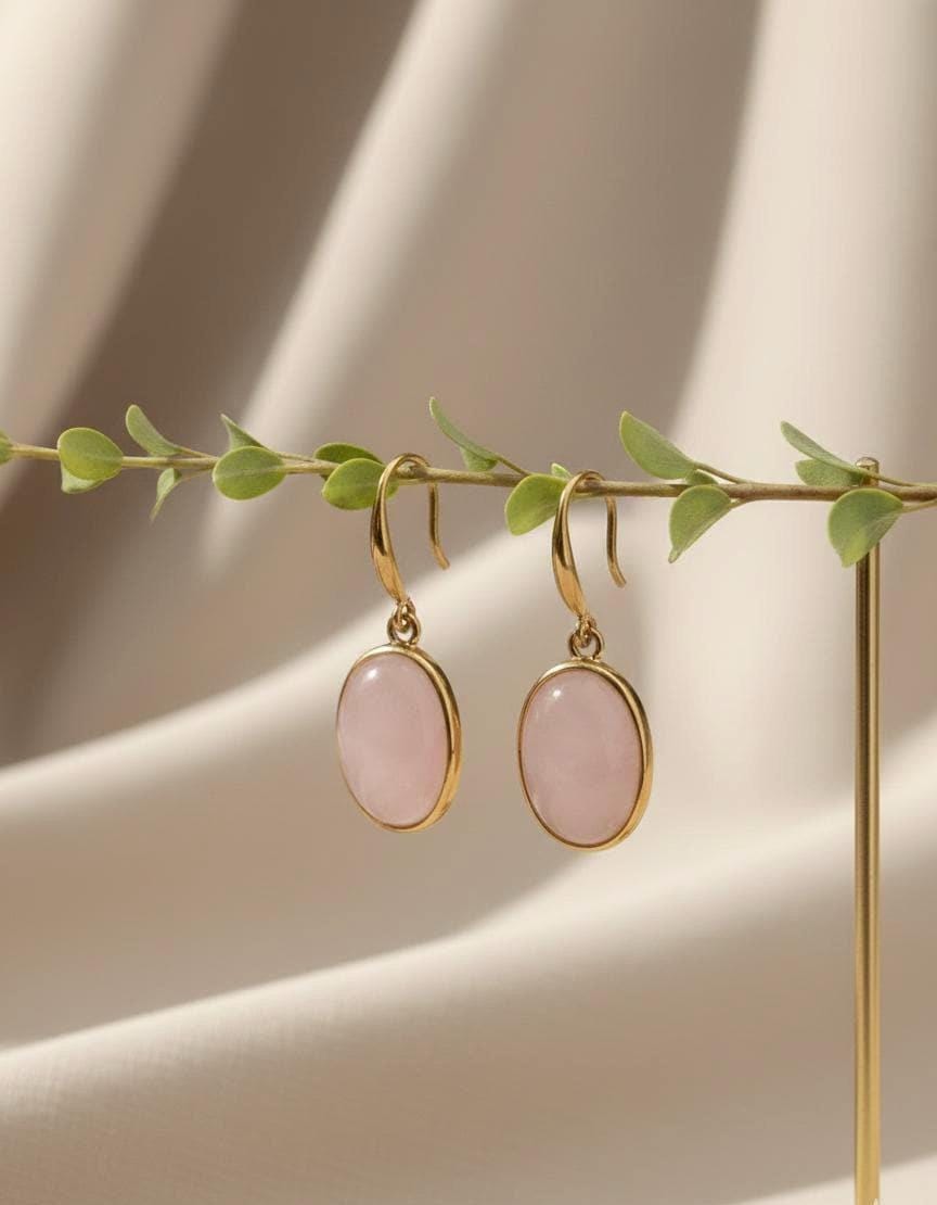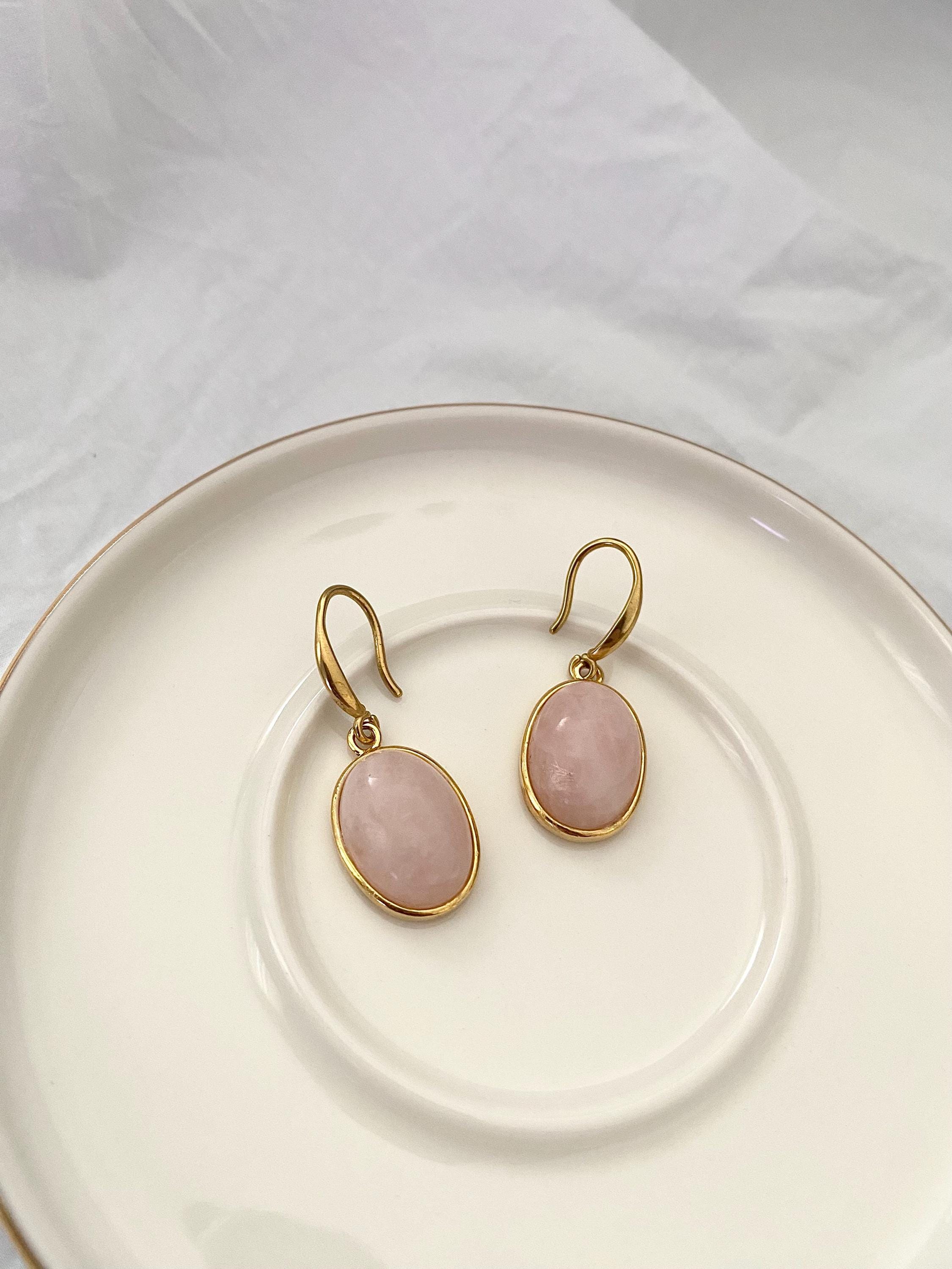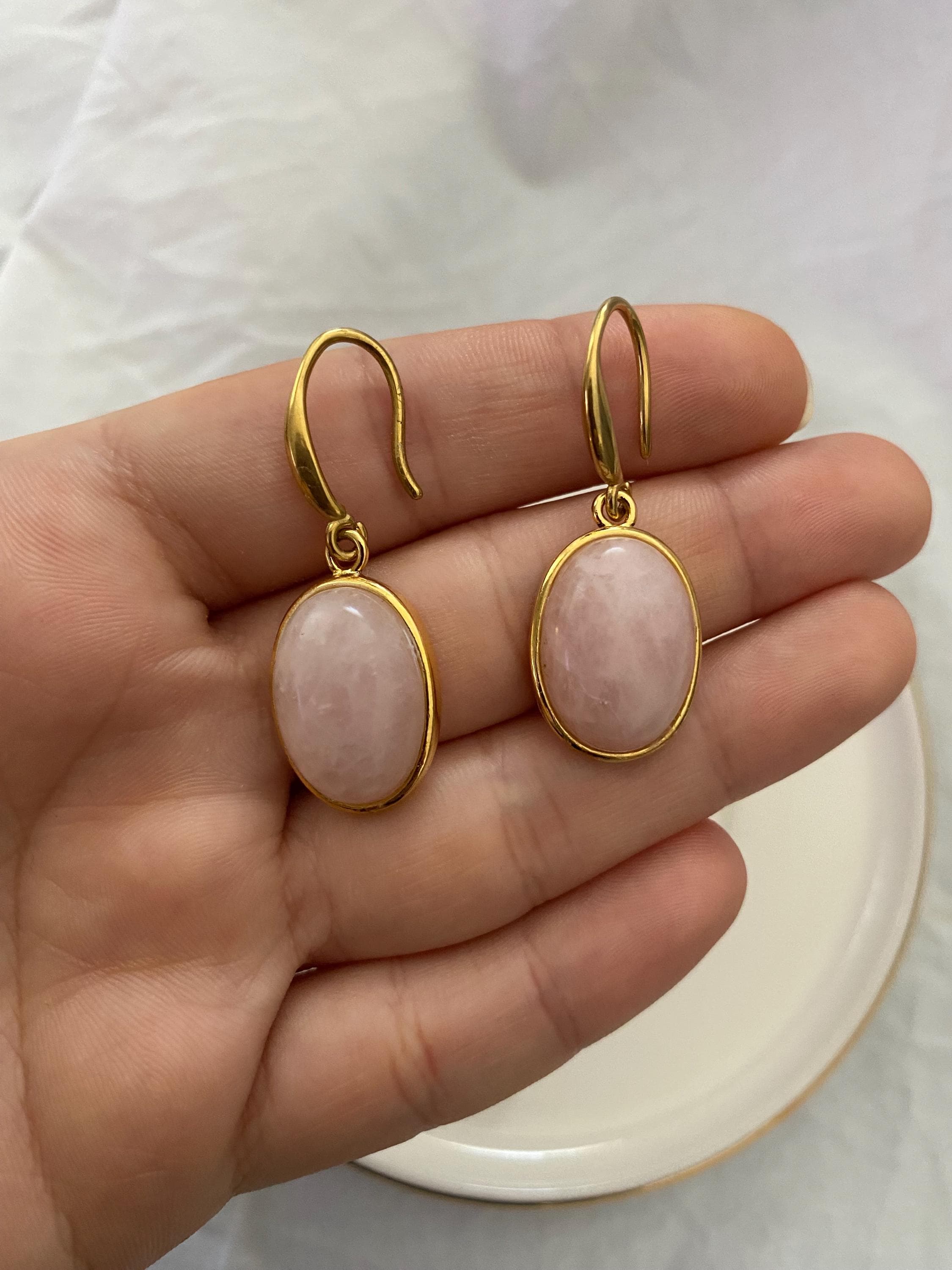 πΈ Minimalist Rose Quartz Earrings β Gold Plated with Stainless Steel Hooks πΈ