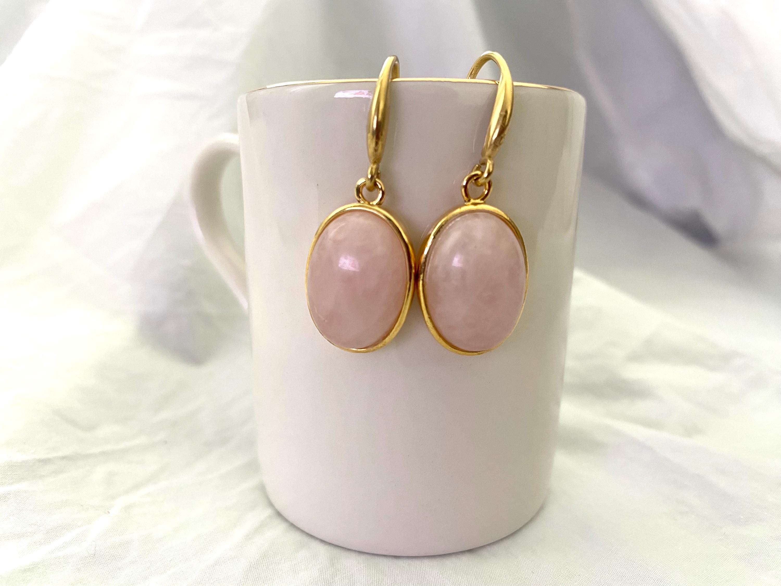 π Featuring a gold-plated rose quartz drop on a durable stainless-steel hook, these earrings are both stylish and long-lasting.