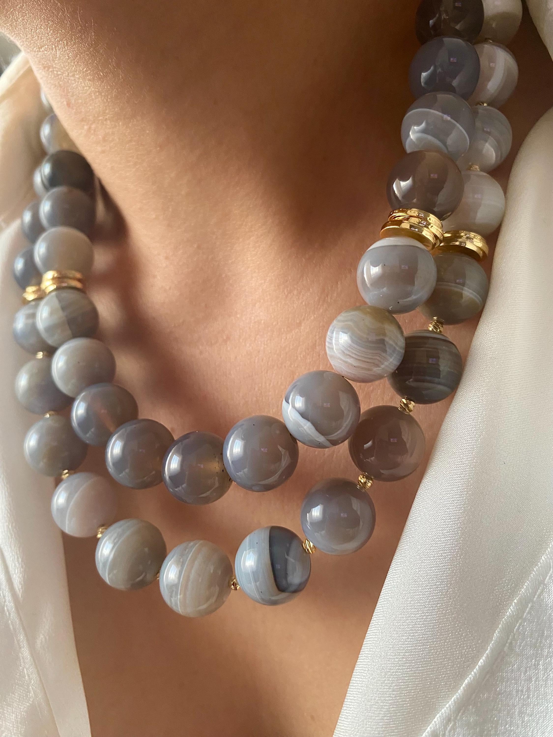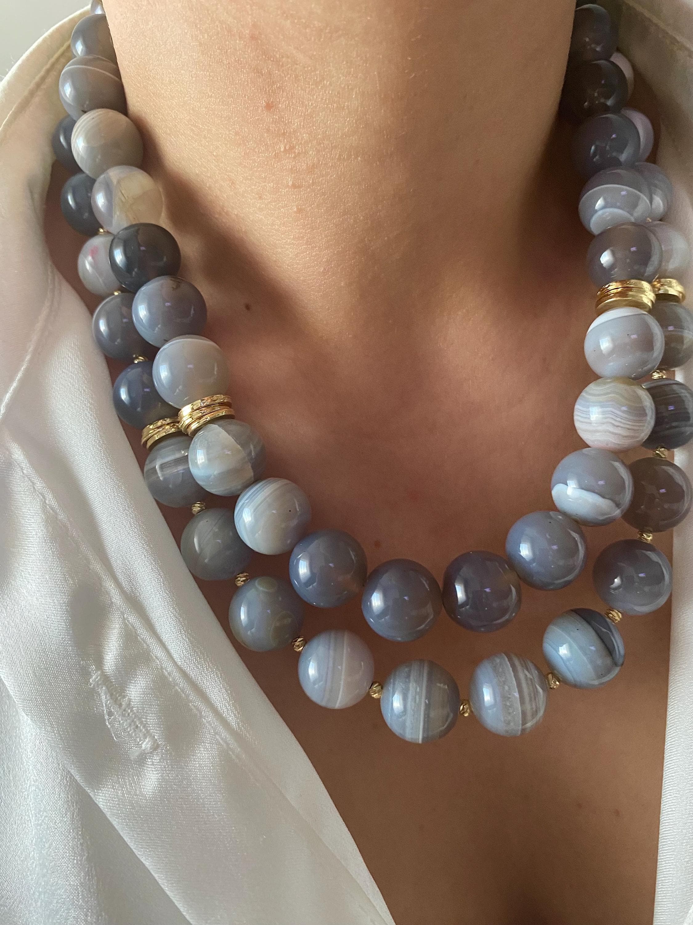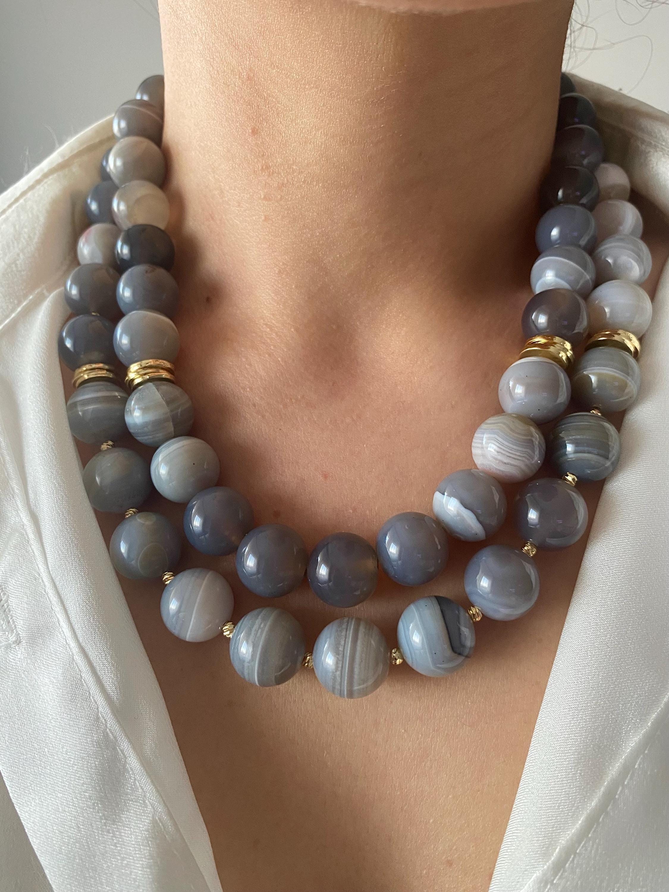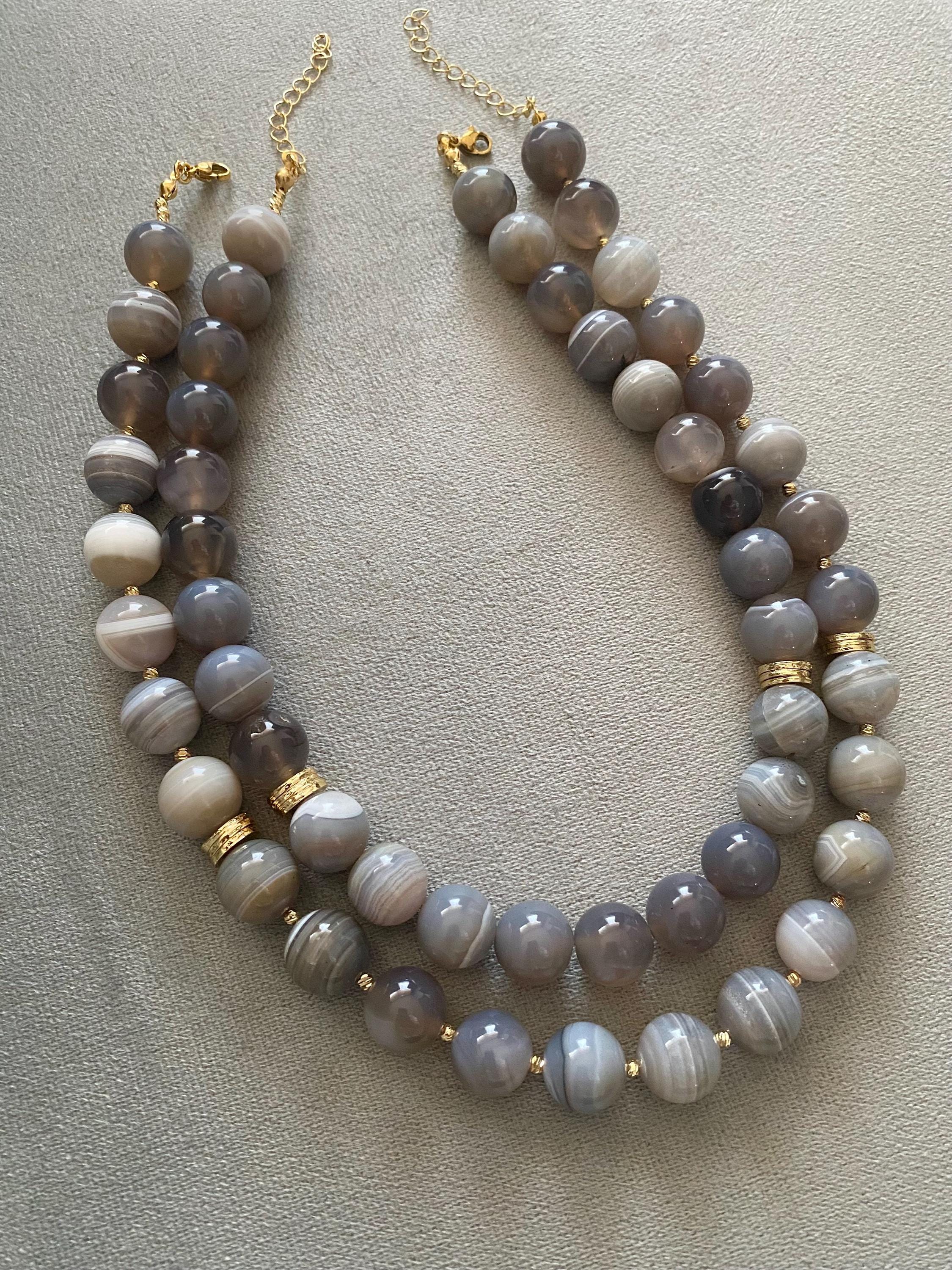 A bold and earthy design crafted with chunky gray Moss Agate stones, this gold-plated multistrand necklace brings a powerful yet elegant boho touch to your style.